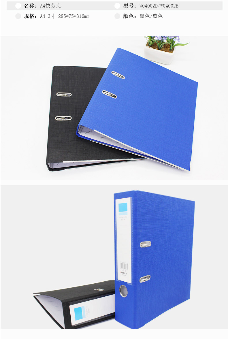 悠米2寸3寸快撈夾快勞夾A4 藍黑文件夾 快勞夾a4 2孔