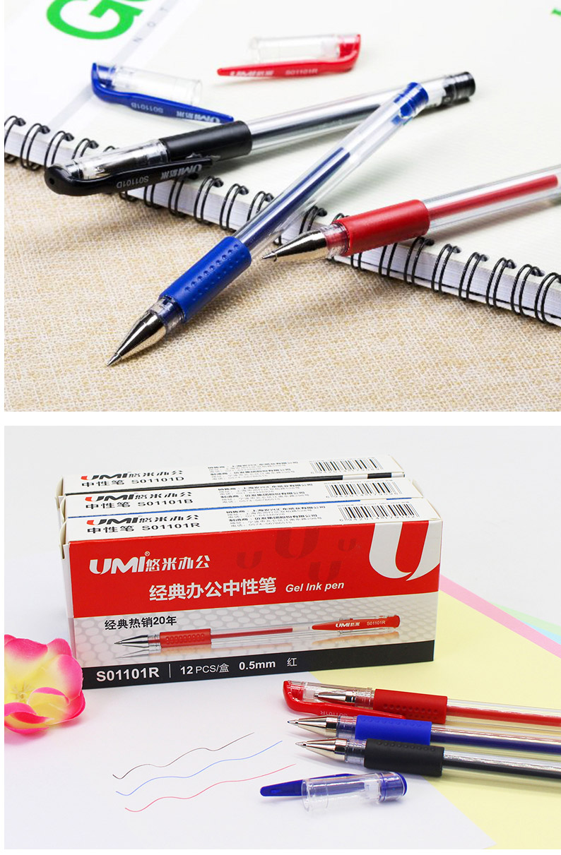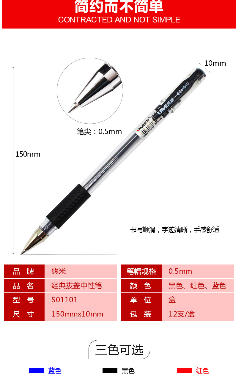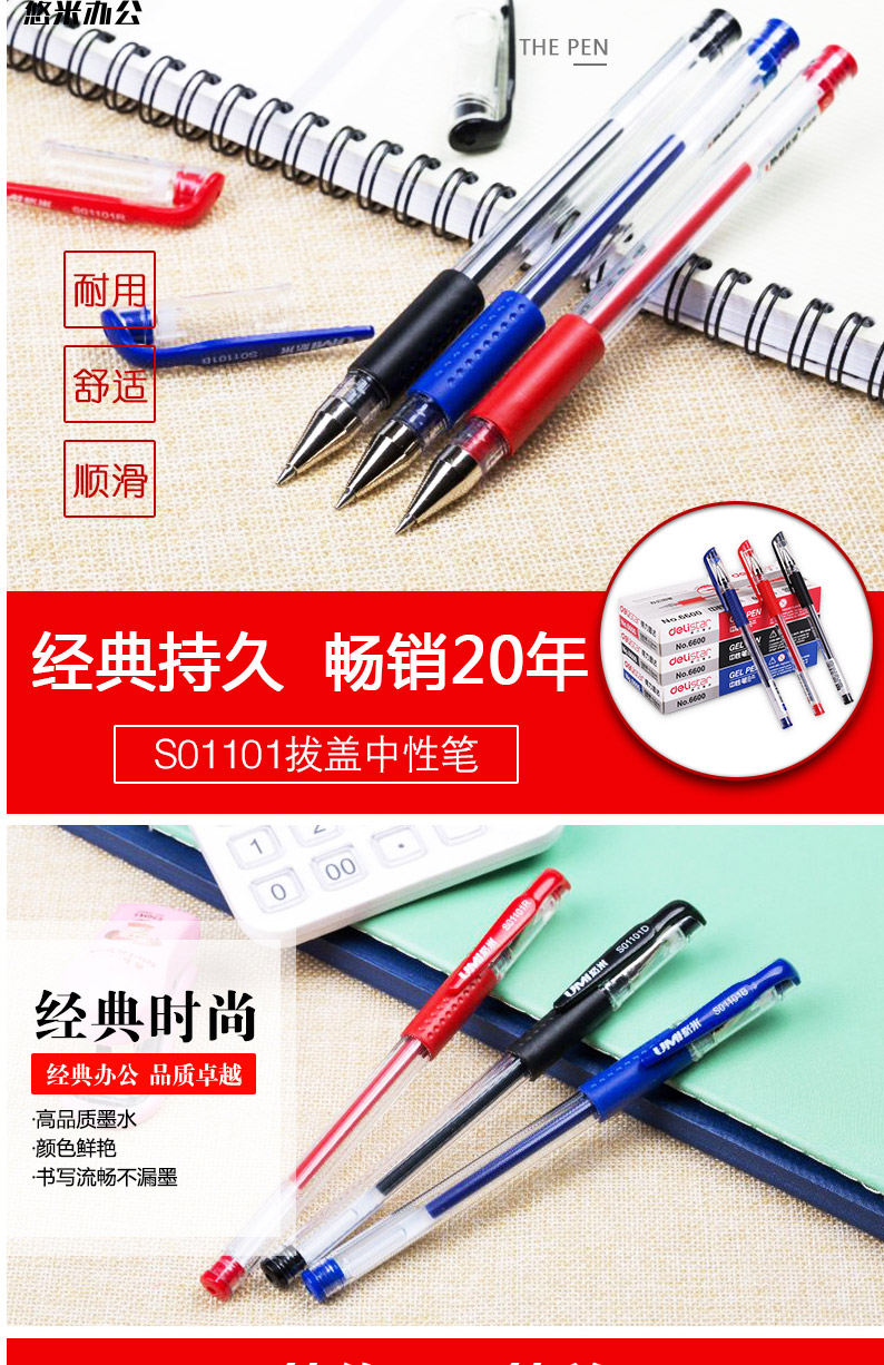 悠米S01101 拔蓋中性筆0.5mm藍(lán)黑紅 簽字考試專用 水性筆辦公用品