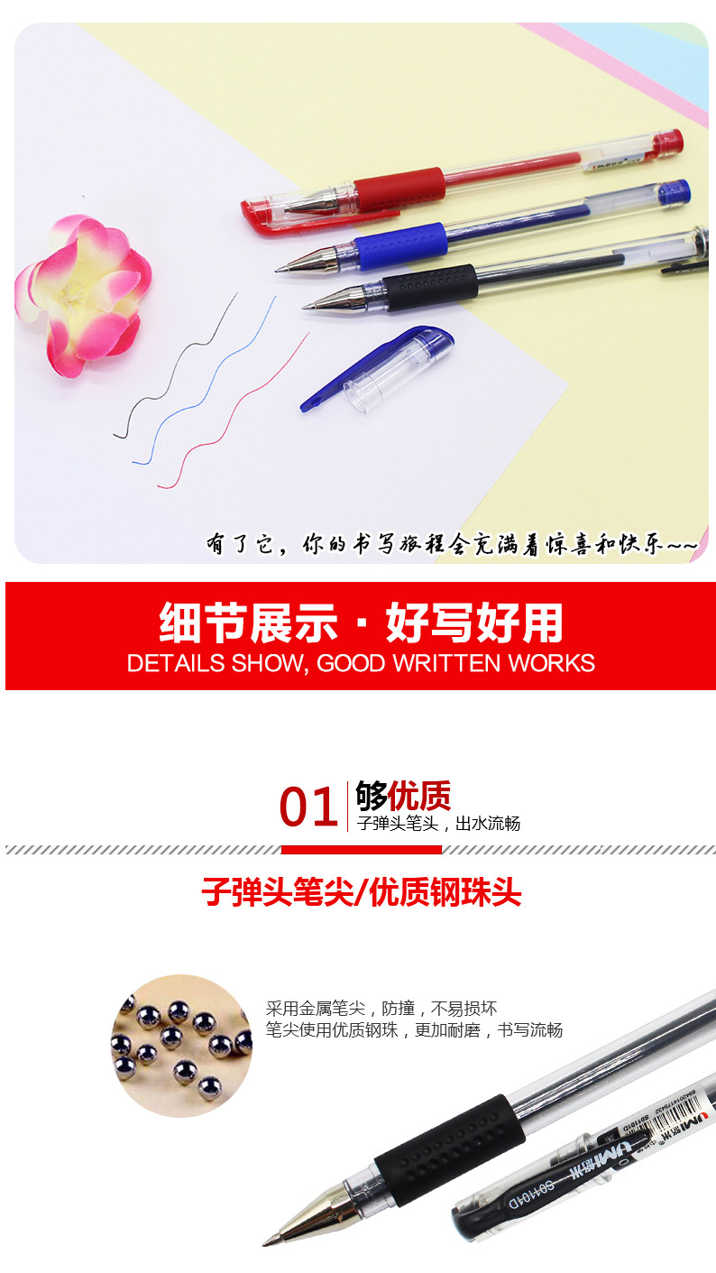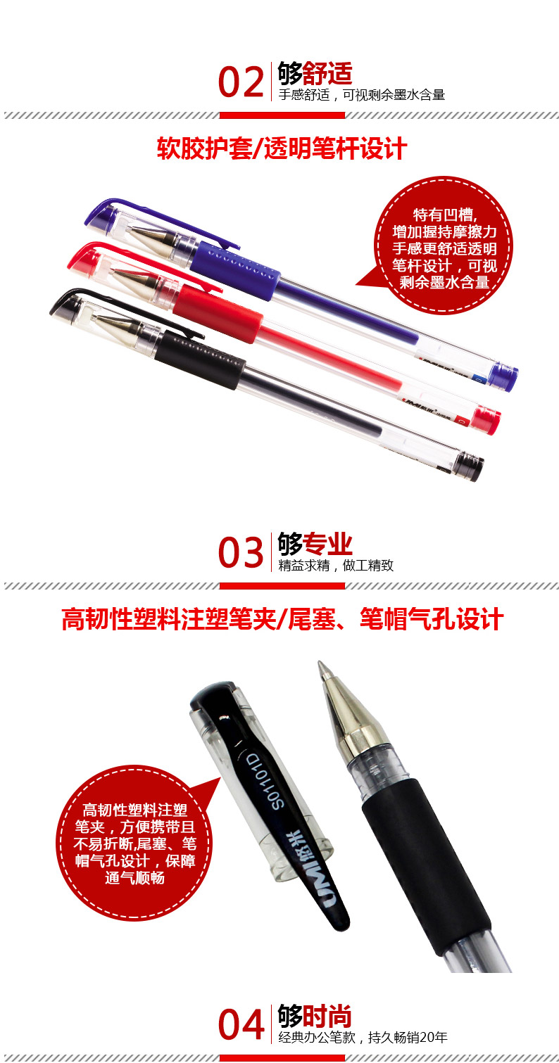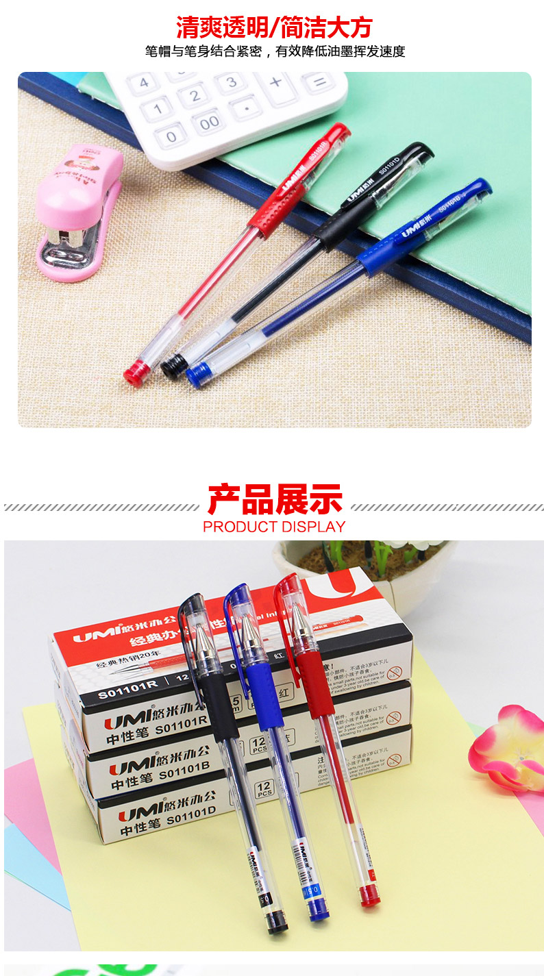 悠米S01101 拔蓋中性筆0.5mm藍(lán)黑紅 簽字考試專用 水性筆辦公用品