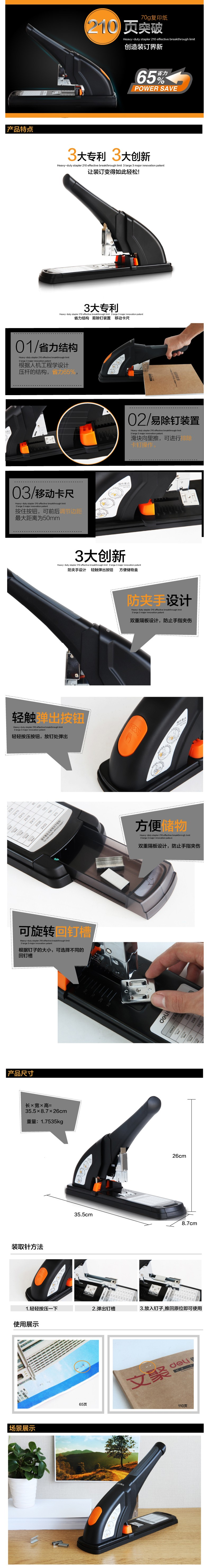得力0385省力厚層訂書機210頁 重型訂書機 重型憑證裝訂器